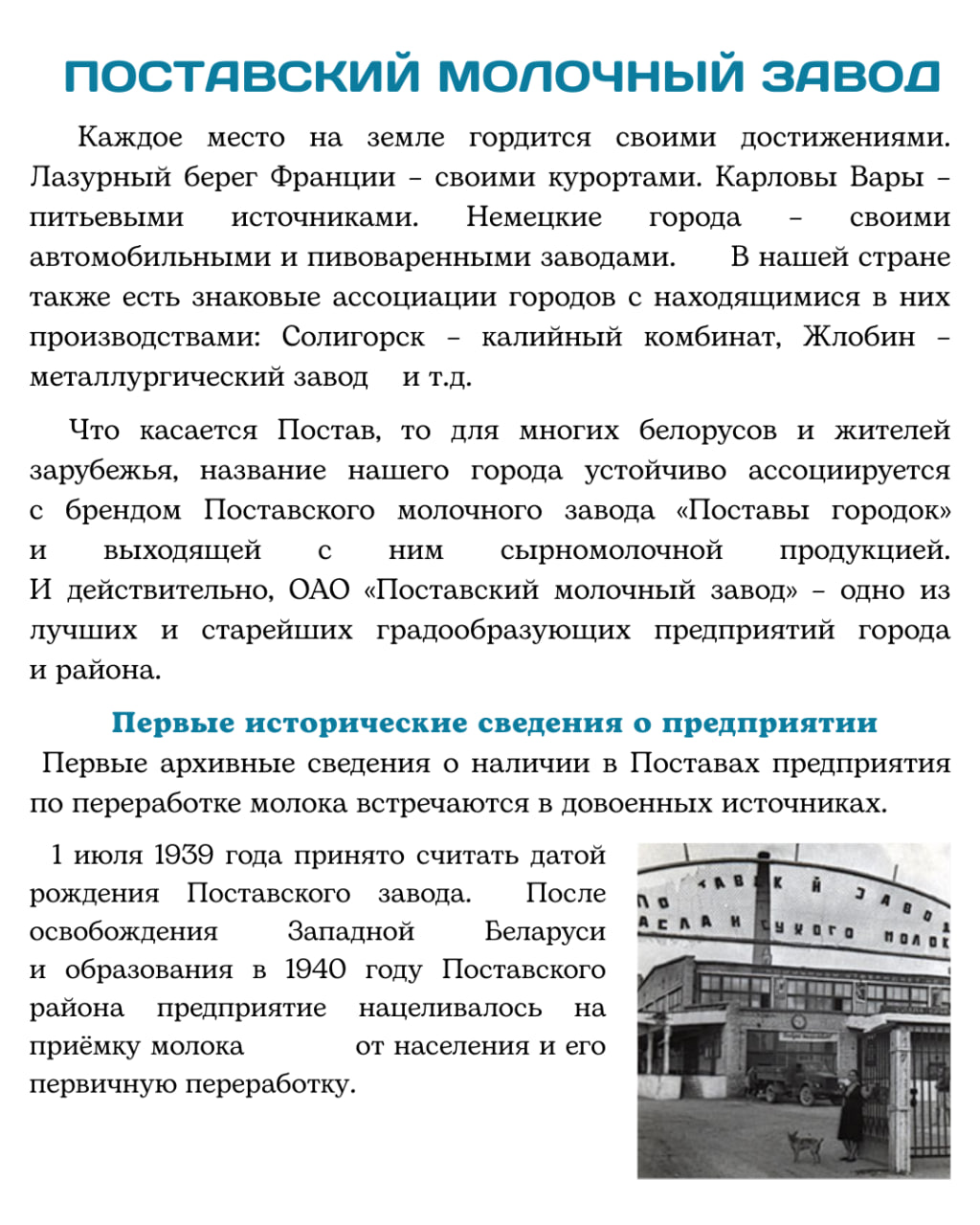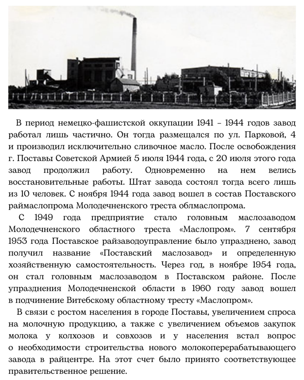 🏭 Поставский молочный завод — один из старейших в республике и основное валообразующее предприятие Поставского района.