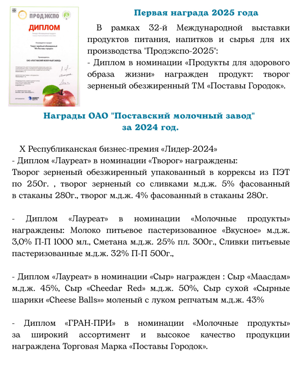 ОАО Поставский молочный завод»