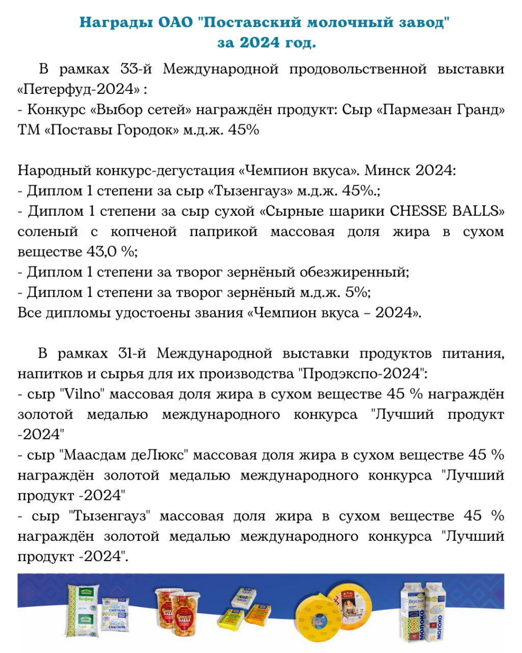 🧀 Завод производит 50 видов вкуснейшей и качественной молочной продукции.